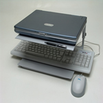 O suporte para notebook vem justamente solucionar este problema. A tela é posicionada na altura correta, formando um ângulo de 90º com a mesa, evitando reflexos da luz e induzindo o digitador a uma postura melhor. O usuário, por sua vez, pode valer-se de um mouse e um teclado convencional, evitando problemas de coluna, tendinites e outras doenças causadas pela postura incorreta e pelo uso do teclado e mouse pouco ergonômicos dos notebooks.